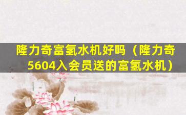 关于“隆力奇5604入会员送的富氢水机”这一说法,首先需要明确的是,隆力奇是一家中国的直销公司,主要经营健康产品。而富氢水机是一种声称能够产生富含氢气的水的设备,据称这种水具有抗氧化等健康益处。