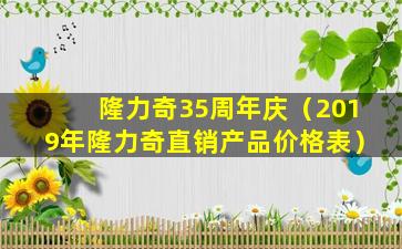 由于我的知识截止日期是2023年,我无法提供最新的活动信息。如果您想了解隆力奇35周年庆的具体活动详情,建议直接访问隆力奇的官方网站或关注其官方社交媒体账号获取最新信息。