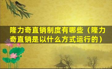 请注意,具体的直销制度可能会随着时间和地区的不同而有所变化,因此如果您想了解最新的隆力奇直销制度,建议直接咨询隆力奇公司或其官方网站获取最准确的信息。同时,参与直销活动时,请确保了解相关的法律法规,避免涉及非法传销活动。