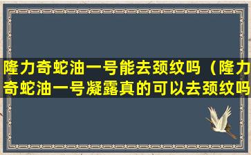 隆力奇蛇油一号是一种常见的美容护肤产品,它主要含有蛇油成分,据称可以帮助滋润皮肤、改善肤质。关于它是否能够去除颈纹,目前并没有充分的科学证据来支持这一说法。