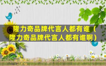 由于品牌代言人的信息可能会随着时间和市场策略的变化而变化,如果您需要最新的信息,建议直接访问隆力奇的官方网站或关注其官方社交媒体账号,以获取最新的品牌代言人信息。同时,由于我的知识截止日期是2023年,如果在此之后有新的代言人信息,我可能无法提供最新的数据。