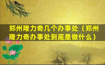 截至我的知识更新日期(2023年),隆力奇是一家中国的直销公司,主要销售健康食品、个人护理产品等。郑州作为河南省的省会城市,可能会有隆力奇的办事处或服务中心。具体的办事处数量和位置可能会随时间而变化,因此我无法提供最新的信息。