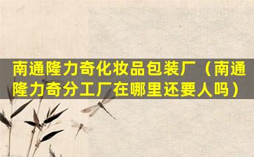 南通隆力奇化妆品包装厂可能是指位于中国江苏省南通市的一家专门从事化妆品包装生产的企业。隆力奇是一个知名的品牌,可能涉及化妆品、个人护理产品等多个领域。由于信息有限,我无法提供该企业的具体详情,如成立时间、规模、产品线等。