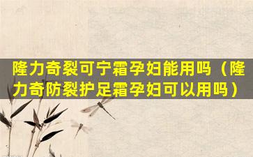 孕妇在使用隆力奇防裂护足霜或其他任何护肤产品之前,最好先咨询专业医疗人员的意见,并仔细检查产品成分,以确保安全。