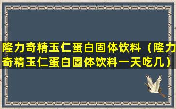 截至我的知识更新日期(2023年),关于“隆力奇精玉仁蛋白固体饮料”的具体信息并不明确。隆力奇(Longrich)是一家中国的多元化企业,涉及健康产品、个人护理产品、家居用品等多个领域。如果“隆力奇精玉仁蛋白固体饮料”是该公司的一款产品,它可能是一种含有蛋白质的固体饮料,旨在提供营养补充或作为健康饮品。