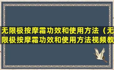 由于我无法提供视频内容,建议您访问无限极的官方网站或授权的销售渠道,以获取最准确和最新的产品信息,包括可能提供的使用方法视频教程。如果您有无限极按摩霜的具体产品名称,也可以尝试在视频分享平台如YouTube或Vimeo上搜索相关的产品使用教程。