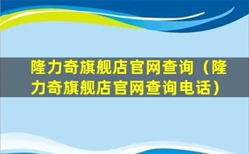 隆力奇(Longrich)是一家中国的多元化企业,涉及健康、美容、家居等多个领域。如果您想要查询隆力奇旗舰店的官方网站或联系电话,建议您直接访问隆力奇的官方网站或者通过官方渠道获取信息。
