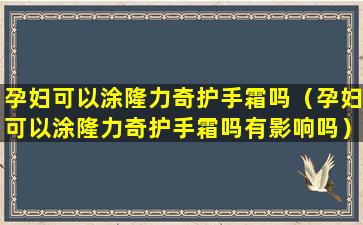 在使用任何护肤品之前,孕妇最好咨询医生或皮肤科专家,以确保产品安全。如果医生认为隆力奇护手霜的成分对孕妇是安全的,那么孕妇可以按照产品说明书上的指导使用。