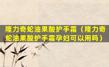 隆力奇蛇油果酸护手霜是一款含有蛇油和果酸成分的护手产品,旨在滋润和修复手部肌肤。对于孕妇来说,使用任何护肤品都需要格外小心,因为某些成分可能会对胎儿造成影响。