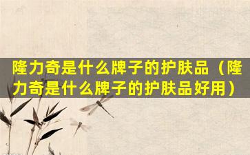 隆力奇(Longrich)是一家中国的多元化企业,涉及健康、美容、家居等多个领域。在护肤品方面,隆力奇提供了一系列的产品,包括但不限于洁面乳、面膜、护肤霜、精华液等。