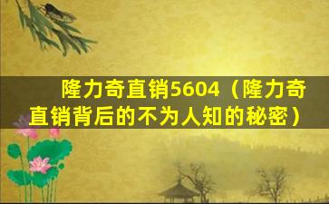关于“隆力奇直销5604”,这个数字可能指的是某个特定的产品编号、促销活动代码或者是某个团队或个人的编号。由于信息不完整,很难给出具体的解释。如果你有更多的上下文信息,可以提供详细情况,以便得到更准确的解答。