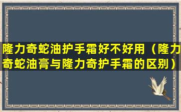 隆力奇蛇油膏和隆力奇护手霜都是隆力奇品牌下的护肤产品,它们的主要成分和用途有所不同。