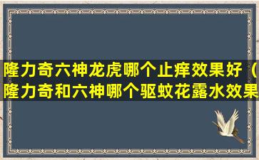 隆力奇和六神都是中国市场上知名的品牌,它们都生产驱蚊花露水。关于哪个品牌的驱蚊花露水效果更好,这可能因人而异,因为不同的人可能对不同的产品有不同的反应。以下是一些关于这两个品牌驱蚊花露水的一般信息: