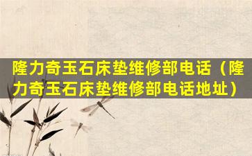 很抱歉,我无法提供具体的电话号码,因为这可能会涉及到个人隐私和安全问题。如果您需要联系隆力奇玉石床垫的维修服务,建议您通过以下几种方式来获取官方的联系方式:
