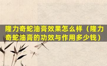 关于“隆力奇蛇油膏怎么样?好吗?”这个问题,以下是一些评价的方面: