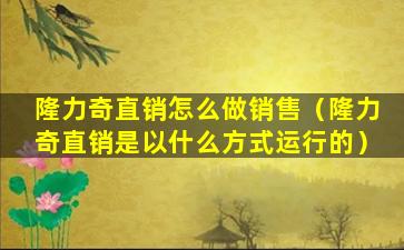 隆力奇(Longrich)是一家中国的直销公司,主要从事健康、美容和个人护理产品的研发、生产和销售。隆力奇的直销模式通常涉及以下几个方面: