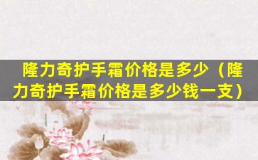 为了获得最准确的价格信息,建议您直接访问隆力奇的官方网站、授权的零售商或在线电商平台(如天猫、京东等)查看最新的价格信息。您也可以在当地的药店或超市查看是否有隆力奇护手霜的销售,并询问具体的价格。