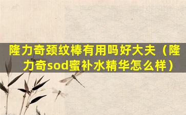至于“好大夫”,这可能是指一个提供医疗咨询服务的平台。如果您在使用隆力奇颈纹棒后有任何疑问或需要专业的皮肤护理建议,可以咨询皮肤科医生或专业的护肤专家。他们可以提供更个性化的建议和治疗方案。