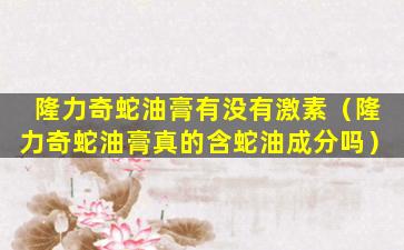 隆力奇蛇油膏是一种常见的中药外用产品,主要成分包括蛇油、甘油、维生素E等,用于滋润皮肤、缓解皮肤干燥等问题。根据产品说明和官方信息,隆力奇蛇油膏不含有激素成分。