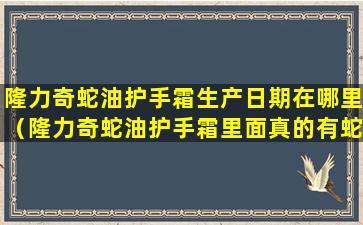 隆力奇蛇油护手霜的生产日期通常可以在产品的包装上找到。具体位置可能因产品批次和包装设计而异,但以下是一些常见的查找生产日期的方法: