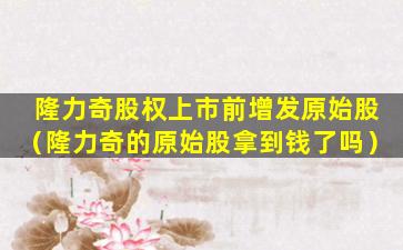 关于隆力奇的原始股,存在一些争议和误解。隆力奇是一家中国的直销公司,它的一些销售人员和会员可能会宣传所谓的“原始股投资计划”,声称通过购买这些股份可以获得高额回报。但是,这种做法可能涉及到非法集资或金融诈骗的风险。