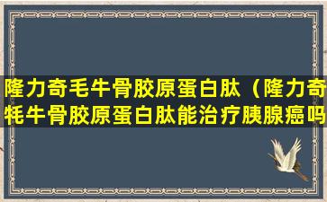 关于“隆力奇牦牛骨胶原蛋白肽”是否能治疗胰腺癌,目前没有科学证据表明任何胶原蛋白肽产品能够治疗胰腺癌。胰腺癌是一种恶性肿瘤,其治疗通常需要综合性的医疗手段,包括手术、化疗、放疗等。