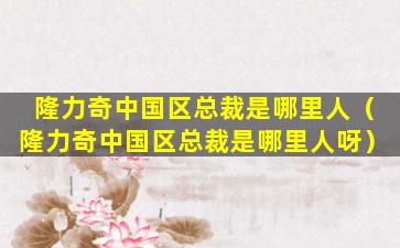 关于隆力奇中国区总裁的具体信息,由于企业高层管理人员的变动和隐私保护,公开信息可能不完整或不及时。如果您需要最新的信息,建议直接联系隆力奇公司或查看其官方网站上的公告和新闻发布。通常,企业会在官方渠道上公布重要的人事变动信息。