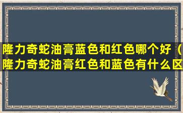 隆力奇蛇油膏是一种常见的中药外用产品,主要用于滋润皮肤、缓解皮肤干燥、粗糙等问题。红色和蓝色包装的隆力奇蛇油膏在成分和功效上可能有所不同,但具体的区别需要查看产品的详细说明或咨询生产厂家。