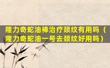 隆力奇蛇油一号是隆力奇公司生产的一款护肤产品,它主要成分是蛇油,据称具有滋润皮肤、改善皮肤干燥等功效。关于去颈纹的效果,这通常取决于个人的皮肤状况、颈纹的深浅以及使用产品的方法和频率。