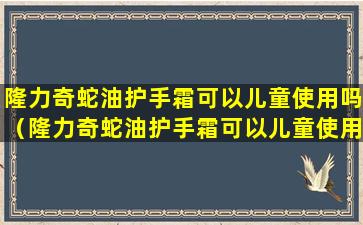 隆力奇蛇油护手霜是一款主要针对成人手部护理的产品,它含有蛇油成分,旨在滋润和保护皮肤。对于儿童使用,通常建议选择专为儿童设计的产品,因为儿童的皮肤比成人更为娇嫩和敏感。