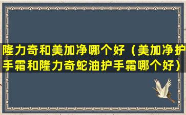 美加净护手霜和隆力奇护手霜都是市面上比较受欢迎的护手产品,它们各自有不同的特点和优势。以下是两款护手霜的一些对比信息,以帮助您做出选择: