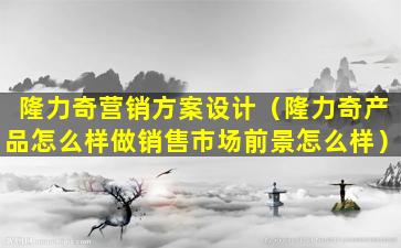 请注意,这只是一个基本的框架,实际的营销方案需要根据隆力奇的具体情况进行详细规划。由于隆力奇的业务模式可能涉及直销等特殊形式,因此在设计营销方案时还需要考虑相关法律法规和行业规范。