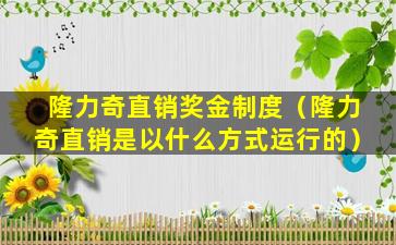 隆力奇(Longrich)是一家中国的直销公司,主要生产和销售个人护理、健康产品、家居用品等。隆力奇的直销奖金制度通常包括以下几个方面: