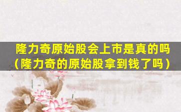 关于“隆力奇的原始股拿到钱了吗”的问题,我无法提供具体的财务信息或投资回报情况,因为这涉及到公司的内部财务状况和个人的投资决策。原始股通常是指公司成立初期或增资扩股时,向创始人、早期投资者或员工发行的股票。持有原始股的投资者能否拿到钱,取决于公司的经营状况、市场环境、股票的流通性以及是否进行了分红或上市等。