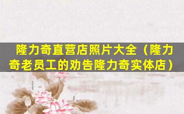 很抱歉,我无法提供实时的图片或照片,包括“隆力奇直营店”的照片。隆力奇(Longrich)是一家中国的健康产品公司,其直营店可能遍布中国各地。如果您想查看隆力奇直营店的照片,建议您可以通过以下几种方式获取: