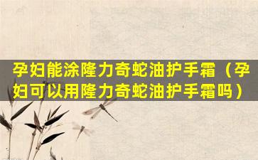 孕妇在使用隆力奇蛇油护手霜或其他任何护肤品之前,应该先了解产品成分,并咨询医生的意见。如果产品成分安全,且医生认为适合使用,那么孕妇可以适量使用以保护和滋润手部皮肤。