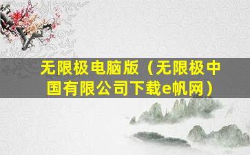 截至我的知识更新日期(2023年),"无限极电脑版"并不是一个广为人知的软件或服务名称。如果您是指某个特定的软件或服务,请提供更多的上下文信息,以便我能够提供更准确的回答。