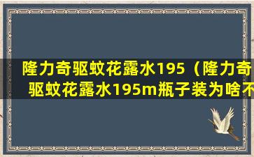 隆力奇是中国的一个知名品牌,主要生产个人护理和家居清洁产品。隆力奇驱蚊花露水是该品牌的一款产品,通常用于驱赶蚊虫和提供清凉感。产品名称中的“195”可能是指产品的某种规格或者型号,但具体含义需要查看产品包装或官方说明。