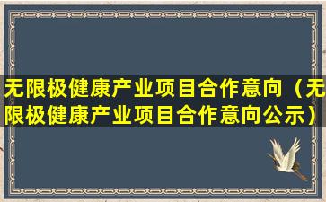 如果您是寻找具体的无限极健康产业项目合作意向公示,建议您直接访问无限极公司的官方网站或联系其官方代表获取最新和最准确的信息。由于这类信息可能会随时间变化,且可能涉及商业敏感内容,因此在此无法提供具体的公示内容。