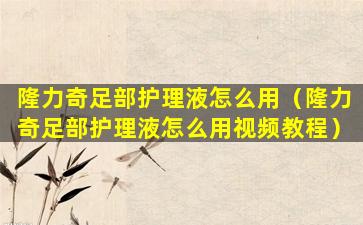 请根据上述步骤使用隆力奇足部护理液,并根据个人情况调整使用频率。如果您需要视频教程,建议您在视频分享平台如YouTube或Bilibili上搜索相关内容。