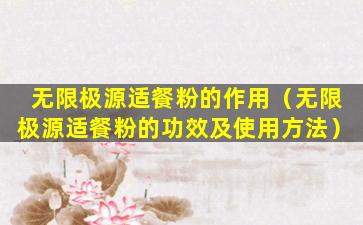 请注意,以上信息是基于一般营养补充品的描述,具体产品的功效和使用方法应以产品说明书或官方指导为准。如果您对无限极源适餐粉有具体的疑问,建议直接咨询无限极公司或查看其官方网站上的详细信息。