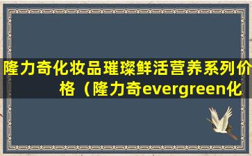如果您对隆力奇的“Evergreen”化妆品感兴趣,建议您查看隆力奇的官方网站或授权经销商,以获取最新的产品信息和购买渠道。同时,购买时请确保产品来源的正规性,以保证产品的质量和安全。