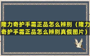 隆力奇(Longrich)是一个中国的品牌,其护手霜在市场上颇受欢迎。要辨别隆力奇护手霜的真伪,可以参考以下几个步骤: