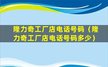 很抱歉,我无法提供具体的电话号码信息,因为这可能会涉及到隐私和安全问题。如果您需要联系隆力奇工厂店,建议您通过以下几种方式获取联系方式: