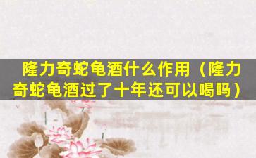 隆力奇蛇龟酒是一种结合了蛇和龟成分的保健酒,它通常被宣传为具有多种保健功效。在中国传统医学中,蛇和龟都被认为具有一定的药用价值,可以用于强身健体、滋阴补肾、增强免疫力等。