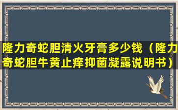 隆力奇蛇胆清火牙膏的价格因地区、销售渠道和促销活动等因素可能有所不同。通常,您可以在超市、药店或者在线电商平台如天猫、京东等地方购买到这款牙膏。价格可能在人民币10元到30元之间,具体价格需要您在购买时查看当地零售商或电商平台的实时报价。建议您在购买前比较不同渠道的价格,并留意是否有优惠活动,以便获得最佳的购买体验。