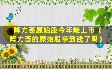 关于“隆力奇原始股今年能上市”的说法,目前没有官方的明确信息。原始股是指公司上市前发行的股票,通常在公司上市后,原始股的价值会有较大的增长。但是,原始股的交易通常受到严格的限制,一般只有公司的创始人、早期投资者或者员工才能持有。
