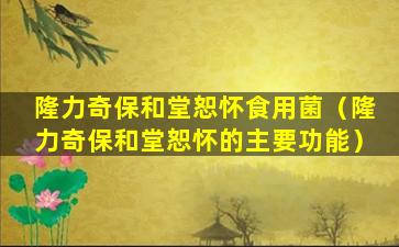 关于“隆力奇保和堂恕怀食用菌”,目前没有足够的信息来提供详细的介绍。如果您是指某个特定的产品或品牌,请提供更多的上下文或详细信息,以便能够给出更准确的回答。