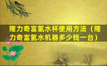 隆力奇富氢水杯是一种便携式的水杯,它可以通过电解水产生富含氢气的水。使用方法通常如下: