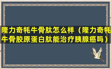 关于“隆力奇牦牛骨胶原蛋白肽”是否能治疗胰腺癌,目前没有科学证据表明任何形式的胶原蛋白肽可以直接治疗胰腺癌。胰腺癌是一种严重的疾病,需要通过专业的医疗手段进行治疗,包括手术、化疗、放疗等。